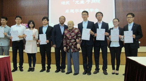 浙江龙盛集团董事长、高分子科学系系友阮伟祥代表在企业界的高分子校友表达了对于同隐教授的祝福。浙江龙盛集团10多年前即开始捐资我校高分子科学系的师资发展和人才培养。今年设立的新一轮“龙盛-于同隐卓越奖学金”主要奖励热爱和有志于从事高分子科学研究的在读本科生和研究生。当天,于同隐教授与阮伟祥一起为今年获得“龙盛—于同隐”卓越学生奖学金的学生颁奖并合影留念。