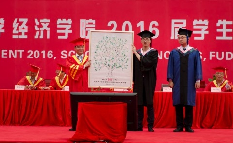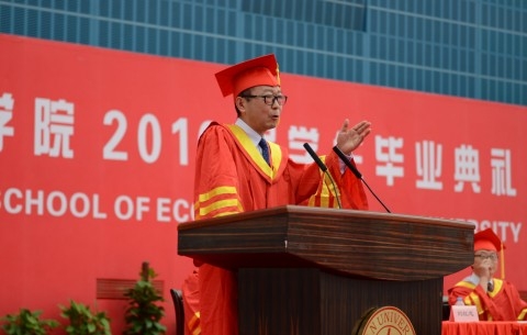 在活跃而热烈的气氛中,张军向本届毕业生致辞。他表示,毕业典礼让他回忆起了自己在复旦度过的10年求学生涯。学生时代的每一天都弥足珍贵,自己曾在书海中徜徉,也曾在繁多的讲座中不断求知进取。经济学院的凝聚力始终很强,而全球校友会的成立更是把“经院人”都联系在了一起。经济学院永远是温暖的大家庭。