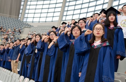 下午13时,典礼在庄严的国歌中拉开序幕。在一段名为《成长》的毕业生纪念短片中,师生们回顾了与经院共同度过的青春岁月,并畅谈了在经院的成长感言。入学时光、校园轶事、成长感悟、温情寄语一一掠过。短片动情的配乐与精彩的情节将毕业生们带到了对经院的回忆和留恋之中。