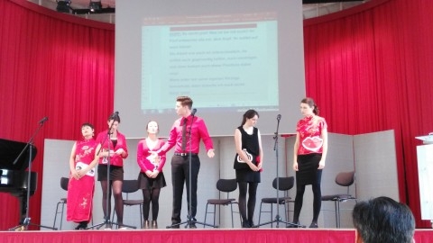 法兰克福孔子学院大学生话剧团受邀表演中文相声《五官争功》