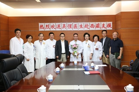 6月13日上午,华山医院丁强院长、顾小萍书记、马昕、毛颖副院长、耿道颖副书记和神经外科副主任胡锦教授以及党办、人力资源部、工会等职能部门负责人一同欢送即将赴西藏日喀则执行为期一年医疗支援任务的神经外科吴惺主治医师。
