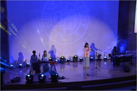 晚会在本届“五月风”纪念视频中拉开帷幕,民乐演奏、吉他弹唱、激情舞蹈等形式多样的节目精彩纷呈。15级本科生田宇辰等同学改编的《药学院版小幸运》引发了现场观众的强烈共鸣;毕业大戏《那年那时那事》艺术再现了12级本科班四年的大学生活;人气教授程能能老师与学生同台献唱,深情演绎了歌曲《莫斯科郊外的晚上》;药学院学生合唱团Demo演唱的《今生永相伴》和《复旦大学校歌》将晚会气氛推向了高潮。
