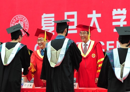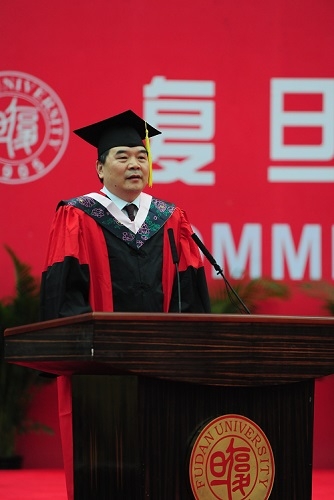 毕业典礼的最后,校长许宁生讲话。他把“力当先行者”作为对同学们的毕业赠言,希望同学们要“敢为天下先”,付诸行动,努力成就自己,在国家发展的时代背景下成长为真正有贡献、有创新思维的“先行者”,为中华民族复兴、为人类文明进步作出贡献。他还叮嘱同学们记住母校是所有复旦人强大的后盾,是大家永远的港湾,希望同学们继续关注母校发展,并祝全体2016届毕业生毕业快乐,前程似锦。