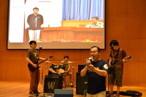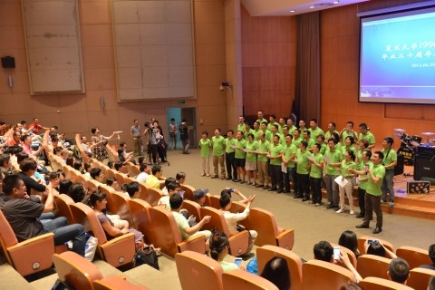 活动开始前,“那些年我们的唱过的歌”如约而至。91级国际政治系校友梁春贵率先开腔,唱起曾经环绕耳际的青春之歌《水手》,化学系不甘示弱,身着浅绿色班服,举班合唱《人民军队忠于党》、《团结就是力量》等歌曲,开启通往二十五年前的时光走廊。其后,91级计算机系校友李麟、物理二系班级等争先登台,唱响《睡在我上铺的兄弟》、《真心英雄》等歌曲,同学聚会。