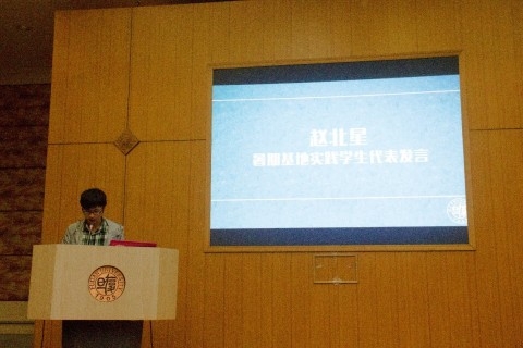 中山医院伍思霖同学和来自哲学学院的赵北星同学分别作为项目实践和基地挂职实践的学生代表进行发言。伍思霖同学结合自己以往参与实践经历分享了对公益的理解,对社会实践的认识。他希望在实践中,延续医科生的责任与担当,再一次深入探访舟山地区周围海岛,开展“觅海岛流疾,强医学根基——海岛流动医院爱心医疗服务活动及疾病普查调研” 项目,让舟山居民了解当地常见慢性病常识,使之更能科学合理的预防和护理自己的疾病。赵北星同学今年暑假即将奔赴四川雅安实践基地进行挂职锻炼。发言中,他结合自身专业认为,要学好哲学,就必须到社会、生活中去学习、发现、解决问题。他还认为社会实践对大学生而言也是一堂必修课,不仅能够拓展视野,丰富阅历。