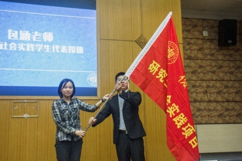 随后,党委研究生工作部有关负责人向暑期社会实践学生代表授予旗帜,并进行出征动员讲话。党委研究生工作部对所有参与实践的同学提出了殷切的期望,希望同学们能在暑期实践中,发挥青年优势,结合专业背景,更好地开展社会实践服务;同时希望同学们能够整合资源,积极做好宣传工作,将实践成果外化,彰显复旦学子的青春正能量。