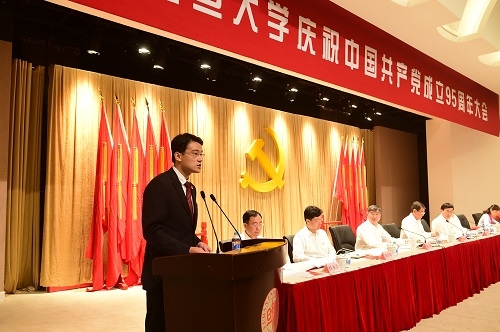 校党委书记魏小鹏代表学校党委在大会上发表了重要讲话。他简要回顾了中国共产党95年的奋斗历程和在党的领导下复旦大学的发展历程,指出复旦的发展是与中国共产党紧密联系在一起的,党组织是学校事业的领导核心,共产党员是学校建设的中坚力量。