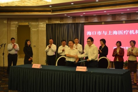 7月8日下午,在海口市委书记孙新阳、市长倪强与上海市副市长翁铁慧,以及市卫生计生委、申康医院发展中心领导的见证下,华山医院院长丁强分别同海口市卫生局局长曾昭长、海口市人民医院院长白志明签署合作协议。上海、海口两市合作框架下的“山海合作”宣告正式开启。