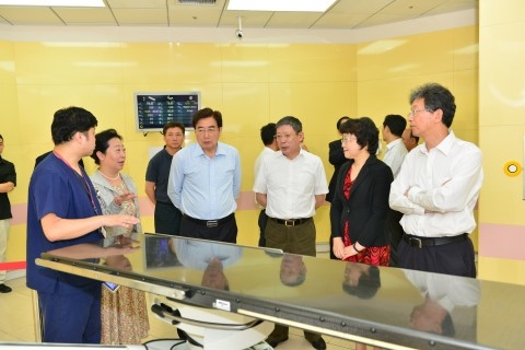 2016年7月13日上午,由中共中央政治局委员、北京市委书记郭金龙率领的北京市代表团一行70余人,在上海市委副书记、市长杨雄,副市长翁铁慧的陪同下考察调研了作为上海市科技创新中心建设新成员的上海市质子重离子医院(暨复旦大学附属肿瘤医院质子重离子中心)。上海申康医院发展中心主任陈建平、党委书记赵伟星及重离子医院全体领导班子陪同接待。陈建平主任代表申康中心和重离子医院,向北京市代表团一行做了专题汇报,介绍了医院建设、运营以来的各项情况。