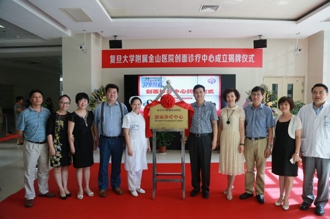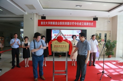 8月1日下午,金山医院在医院门诊大厅举行“创面诊疗中心”揭牌仪式。仪式由朱洁副院长主持,金山区副区长吴瑞弟,全国创面修复专科联盟主任、中国医师协会创伤外科医师分会会长、瑞金医院烧伤研究所所长陆树良,长海医院创面中心副主任徐洪莲,同济大学附属杨浦医院护理部主任王静,金山区卫生计生委主任鲁桂根、副主任杨健,金山区妇联主席陆英,金山区总工会副主席沈美娣以及我院党委书记陈刚出席,创面诊疗中心工作人员和部分医务人员代表共60余人参加揭牌。