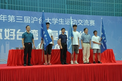 8月12日上午,第三届“沪台杯”大学生足球篮球排球邀请赛在复旦大学正大体育馆开幕。来自两岸三地16所学校的44支球队、500余名运动员相聚一堂。