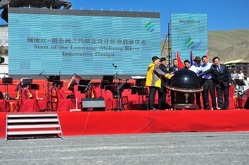 柬埔寨驻西安总领事馆总领事辉比威(Hoy Pichravuth)、缅甸驻南宁总领事馆总领事昂哥(Aung Ko)代表湄公河五国、杂多县委副书记田库有代表承办单位在开幕式上先后致辞。荆德刚、师存武、杨林,以及湄公河五国代表共同按亮启动球,“澜沧江-湄公河之约创意设计活动”正式启动。大赛国际组委会代表陶英泽为活动授旗。开幕式由玉树藏族自治州委常委、宣传部部长江海梅主持。