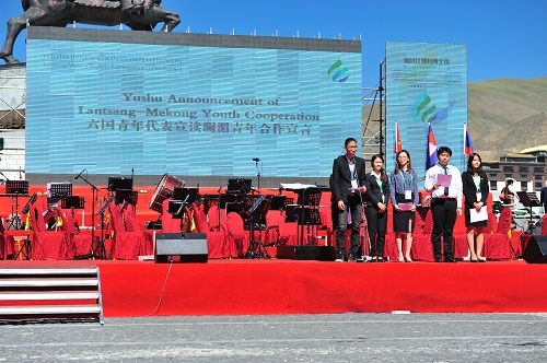 决赛期间,澜沧江源头见证了“澜沧江-湄公河水汇流仪式”。选手们身穿各国服饰,将盛放在具有民族特色的器皿中的、从祖国带来的澜沧江-湄公河河水一齐汇入位于玉树杂多县城的澜沧江源头。