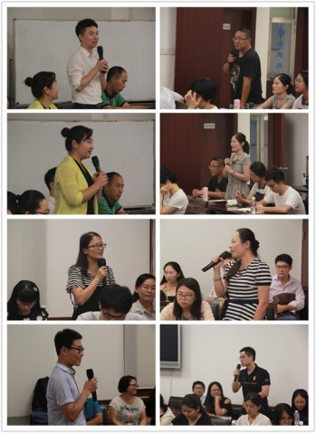为了让老师们和同学们能够互相增进了解,并为即将到来的硕士导师双选工作做好铺垫,本次新生见面会接着安排了导师和学生互相介绍的环节。首先,顾钰民、徐蓉、肖巍、郎秀云、谌中和、朱伟、李冉、杜艳华、杨宏雨、王涛等各研究生导师们分别为新生们详细介绍了自己的研究方向,并结合自己治学经历,为新生们未来三年的马院学习生活指明了方向。最让人印象深刻的是李冉、王涛等老师不约而同地告诫新生们,一定要利用好学校资源,把握好学习的主线,围绕读书、听课、思考三个环节,不断升华自我,使自己的心灵脱胎换骨。