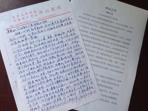 2015年,河北省卫计委科教处与华山医院教育处商讨,每年选派20名青年学科骨干到华山医院进修学习1年。当年9月,闫阳妹作为青年学科骨干来到华山医院心内科进修。无论在病房、心电图室、心超室还是在门诊,闫阳妹都展现出极高的职业素养和吃苦耐劳的品格,思路清晰,基础扎实,沉着冷静,临危不乱,获得了带教老师的一致认可。为此,在闫阳妹结束进修之际,心内科特意手写一封表扬信,不仅对闫阳妹提出表彰,还感谢河北省卫计委科教处的认真选拔。而闫阳妹也在进修小结写了她所看到的华山严谨、华山激情、华山协作、华山创新和华山人文,学业上、技能上和临床经验上的巨大进步和收获令她欣喜,这些将是她成长为一名优秀医生的基础。“师徒”间的坦诚交流让人感动,王小芬说,这只是众多“对口支援”项目的进修学员和华山医院之间关系的一个缩影。