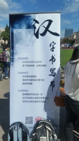 10月11日中午,中国语言文学系分团委学生会举办了汉字书写节活动。活动现场由硬笔书写区域、软笔书写区域和奖品兑换区域三个区域组成。