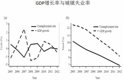 最近我跟我的学生做了一个研究,因为中国登记失业率数据,官方的数据是没有变化的,4.1%,十五年都没有变。可是GDP的增速我们现在看到在2008年以后,一直是一个下行的趋势,所以城市的登记失业率,看上去没有什么参考的价值。