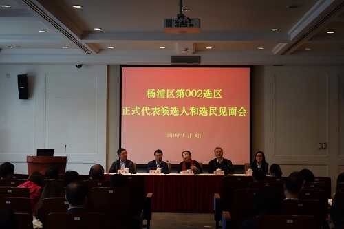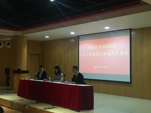 其中,杨浦区第001选区正式代表候选人与选民见面会于11月11日上午在邯郸校区光华楼东辅楼102报告厅举行。会上,许征、李秋明、应质峰、陈思和四名正式代表候选人结合其工作经历、专业背景等对履职设想进行了详细的汇报和说明,表达了为选民服务的愿望。