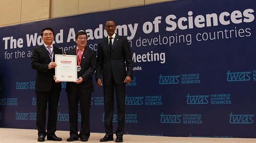 11月14日,中国科学院院士、复旦大学化学系教授赵东元出席了在卢旺达首都基加利召开的发展中国家科学院(TWAS)第27届院士大会,并荣获 “发展中国家科学院-联想科学奖”(TWAS-Lenovo Science Prize)。发展中国家科学院院长、中国科学院院长白春礼主持大会开幕式,卢旺达总统保罗·卡加梅(Paul Kagame)、教育部长帕皮亚·穆萨菲利(Papias Musafiri)出席大会并致贺辞。来自全球60多个国家和地区的300多名科学家,多个国家的科技部部长或代表,国际组织的代表参加会议,围绕“科技创新与可持续发展”这一广受关注的主题进行了研讨。
