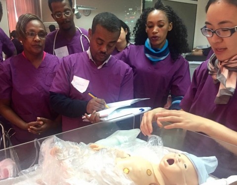 GHSP-OP4-V01是由“复旦大学全球健康研究所”负责的中英全球卫生支持项目,得到了复旦大学公共卫生学院、复旦大学护理学院、复旦大学附属妇产科医院以及复旦大学附属儿科医院的大力支持。复旦大学护理学院承担了其中对埃塞俄比亚助产培训师的培训。继2016年1月成功完成第一轮培训后,本轮培训采用“实战型培训”的方式,体现了临床情景模拟性、多学科团队合作性的特点,并由中方培训团队督导前一轮培训的埃塞助产培训师应用高仿真模拟助产培训系统完成对新一轮埃塞俄比亚助产人员的培训。