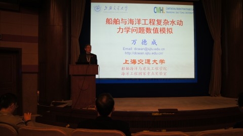 大会主题报告环节由复旦大学航空航天系13级博士生、复旦大学人才工程(二期)队员张易明主持,三位特邀嘉宾分别做了主题报告。沈阳飞机设计研究所副总设计师左林玄就“面向未来飞机设计的飞发一体化技术”为主题,阐述了发展高超声飞行器的必要性、国外高超声速飞行器的发展现状与趋势及高超声飞行器设计与研发中所涉及到的关键技术问题;万德成就“船舶与海洋工程复杂水动力学问题数值模拟”为主题,配合丰富的仿真动画,直观地给与会者展示了不同情况下的模拟结果;同济大学力学学科委员会主任、上海力学学会理事长、国家杰出青年基金获得者徐鉴就“蚯蚓型移动机器人的驱动、环境共融动力学分析和实验”为主题介绍了他和他的团队的成果。