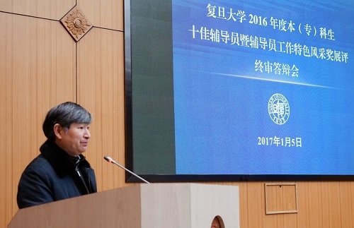 1月5日,复旦大学2016年度本(专)科生十佳辅导员暨辅导员工作特色风采奖展评终审答辩会在逸夫科技楼多功能厅举行。校党委副书记陈立民及学校有关职能部处负责同志出席并担任评委,各学院学生工作首要负责人、学工组长、辅导员代表到场观摩和学习。