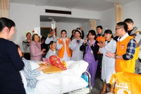 在神经内科病房,“慧心悦萌”志愿者们也在用热情鼓励患者积极治疗,快乐过节。“慧心悦萌”志愿者团队是一支由38名国家二级、三级国家级心理咨询师与华山医院神经内科护理团队共同组成的心理援助志愿者团队。他们用尤克里里琴声伴奏演唱《新年好》《如果快乐你就拍拍手》等歌曲,一起带领病友做手语操“你真的真的很棒”,得到了病友和家属的笑容和感谢,一位来自北京的病友侃侃而谈自己的患病和就医过程,并期望志愿者们能把她的经历广而告之,从而让他人在疾病初露端倪的时候就引起重视……