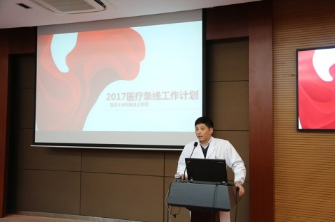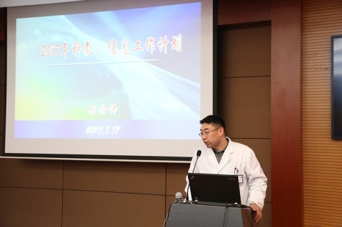 紧接着,分管各条线的副院长周晓东、朱洁、桂律和科教科科长陈英辉分别作了2017年医教研的工作设想,其中医疗业务量提出了明确的增长百分比,结合医改政策控制门诊输液、药占比,规范落实核心制度,建立肿瘤治疗中心、胸痛中心、介入中心,推进多学科综合诊疗模式;落实医疗安全管理,开设精品门诊、规范专科专病门诊,完善预约检查、预约诊疗,延续护理网络平台、强化培训,推进联合联动工作,推广适宜技术、扩展联合病房;在学科建设和人才培养方面,夯实基础、充实梯队,做好住院医师的规范化培养、本专科教育和继续教育;后勤管理则力争二期工程成为“双优”工程,做好节能降耗工作,进一步美化医院环境,成为市郊一流的综合性医院,为患者提供优质的诊疗技术、服务与环境。