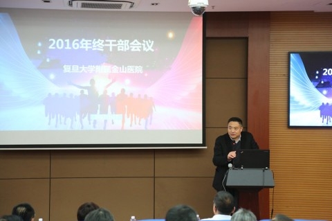 本月17日下午,金山医院2016年干部年终大会召开,党委书记陈刚主持,院领导班子及中层干部一百余人出席会议。