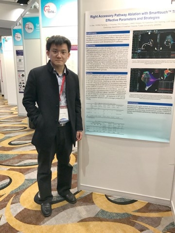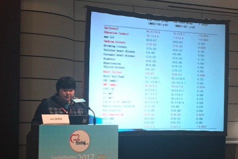 沈俊医生曾为华山医院内科基地四证合一学员,2016年毕业后留在我院心内科工作。在学习期间,沈俊医生就致力于心律失常及心房颤动专病的临床及科研工作,观察、收录了1000余例心房颤动患者的诊治情况,并就此做了分析和总结,《1000例房颤患者抗凝治疗现状的单中心横断面研究》作为壁报展示,《房颤对认知功能影响的临床研究》作为口头发言,展现了我院心内科在心律失常及房颤领域的工作经验与成果。熊楠青医生曾为复旦大学8年制医学生,2015年留院工作,在学习、工作期间,他致力于快速性心律失常的射频消融工作,投入大量时间将我院开展的心电生理病例做了分类总结,结合最新的技术进展,在大会上作了《房室结折返性心动过速患者的房室交界区空间结构研究》和《(病例)存在右房瘢痕的心房扑动-三尖瓣峡部隔离的必要性》的口头发言,他撰写的《高密度快速解剖标测结合压力监测导管在肺静脉电隔离术中的作用》和《Smarttouch导管在右侧旁道消融中的有效参数和策略》也作为壁报在大会上展示。尽管初出茅庐,两位青年医生英文表达流利、理论基础扎实,在学术大会上对答如流,获得了与会者的赞赏。