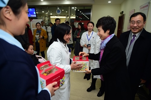 3月8日,复旦大学附属妇产科医院人头攒动,一系列“关爱女性、呵护生命”的公益活动正在举行。校党委书记焦扬,副校长桂永浩、许征等学校领导来到妇产科医院杨浦院区,走访慰问节日坚守在工作岗位上的女医护人员。