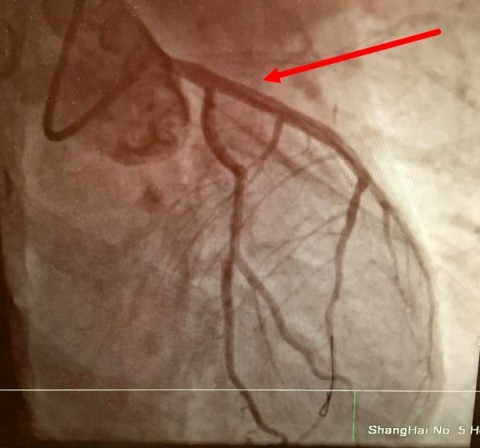 患者病情凶险万分,随时可能出现生命危险,心内科徐迎佳主任闻讯赶到现场坐镇抢救,根据患者临床表现及心电图明确诊断:急性心肌梗死,考虑冠脉前降支闭塞,必须行急诊冠脉介入治疗。