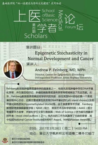 3月28日下午,美国约翰斯·霍普金斯大学Andy Feinberg教授应邀做客上医学者论坛,在明道楼二楼多功能厅做了题为Epigenetic Stochasticity in Normal Development and Cancer的学术报告。报告会由基础医学院院长汤其群主持。