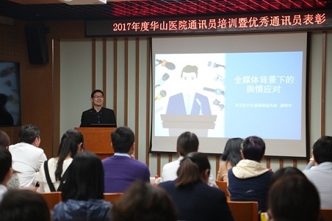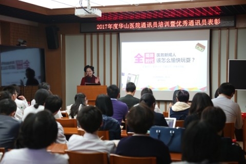 近日,华山医院70余位科室通讯员及宣传骨干围绕着“全媒体时代,医务新闻人该怎么愉快玩耍?”的主题,展开了一场欢乐有料的表彰会议暨讲座沙龙。市卫计委新闻宣传处副处长潘明华、华山医院党委书记顾小萍、院工会常务副主席苏家春来到活动现场,与宣传骨干们一同分享经验,为医院品牌建设出谋划策。