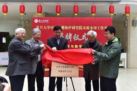4月10日,复旦大学中华古籍保护研究院木板水印工作室揭牌仪式暨学生版画展、版画创作与教学研讨会在复旦大学文科图书馆大厅举行。