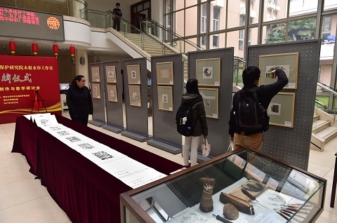 揭牌仪式后,与会者参观了中华古籍保护研究院2016级古籍保护方向专业硕士生的版画作品展。