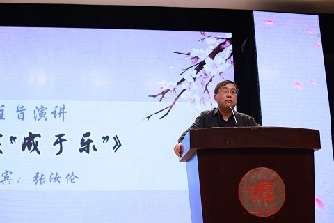 主讲嘉宾张汝伦则从中国哲学视角出发,以《谈谈“成于乐”》为题发表主旨演讲,阐发了传统文化中美育对于青年学子“修身养德”的重要意义,以及当代中国的文化命运。他从诗、礼、乐三者之间的关系引入,点明礼乐文化在中国传统文化人文教养和品行培养方面的重要性,强调“乐”对于沟通人心与德性开拓心智与思路的潜移默化的作用。