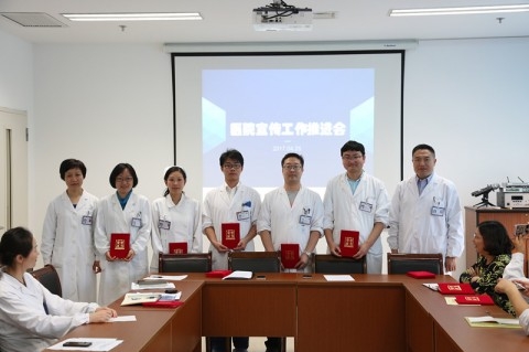 陈刚代表医院对获得表彰的先进个人表示祝贺,希望获奖个人能珍惜荣誉、发扬成绩,从思想上树立起宣传意识,将宣传工作做到有声有色,不断提高宣传的质量。他指出,宣传工作是医院最重要工作之一,要有力运用好宣传阵地,大力弘扬医院正能量。宣传目的是与患者达成友善与有效的互动沟通,并及时向社会传播医疗信息,便于患者就诊,同时文化引领医院建设,提升医院整体素养。他强调,要创新思维,深入发掘,主动运用多种新的传播方式做好科室与医院宣传工作,充分展现医护形象,让医院优质的品牌形象深入人心。鼓励大家继续全员参与,立体化打造精品宣传平台、精英宣传团队和精彩系列报道,宣传队伍要发扬奉献精神,打好宣传这个硬仗,保证日日有新闻,月月有亮点。