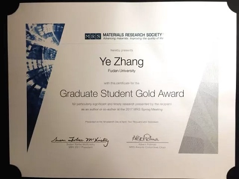 彭慧胜课题组此前已经有3名博士生获得美国材料研究学会优秀博士生,即仰志斌(2013年,银奖)、张智涛(2015年,银奖)和孙浩(2016年,金奖),张晔是该课题组第4位获得此殊荣的博士生。