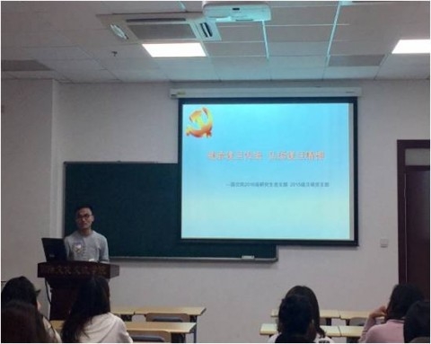 毕业班党员代表发挥朋辈帮扶作用,分享他们在论文写作、实习求职、个人发展规范等方面的经验。费成志同学谈到论文开展必须具有较强的计划,注意时间安排;徐嵘同学总结了自己报考公务员的感悟:要耐得住寂寞,扛得住压力;朱佳毅同学从“想做什么”和“能做什么”两个维度讲到如何确定自己的职业定位,找到适合自己的工作。