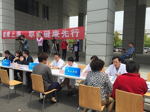 4月24日至4月30日,全国第十五个职业病防治法宣传周,今年的主题是“健康中国,职业健康先行”。4月25日,金山医院联合区疾控中心、区安监局在上海蓝滨石化设备有限责任公司举行大型宣传义诊活动,普及职业病防治知识。据悉,除了急性化学中毒外,金山职业病主要为职业性噪声聋,占到前来诊断的30%左右,全区职业病防控处于可控范围。