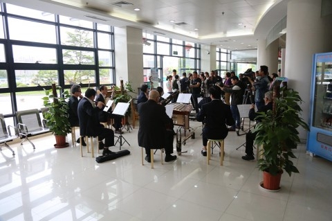金山医院“传统文化谱写新乐章”第二期公益音乐会于5月5日在门诊大厅举办。医院社工部联合了“双百结对”东方村的民族乐队为候诊患者提供一场大师级的演奏视听。悠扬婉转的音乐萦绕在整个医院门诊大厅。让就诊病人匆匆的脚步放慢了节奏,紧张的情绪伴随着音乐舒缓下来。