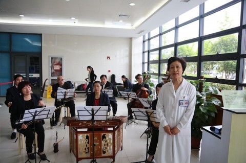 东方村民乐队的《喜洋洋》、《紫竹调》等一首首欢快、喜悦的曲子不断地从文艺骨干的指尖滑出,观看演奏的病患们也情不自禁地跟着节奏打着节拍。一曲《铃儿响叮当》更是把这场小型演奏会推向了高潮。弦音如水,笛声空灵近半小时的演奏,让候诊的病人们意犹未尽。