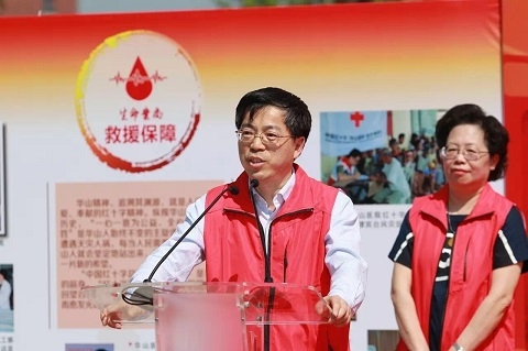 袁美英老书记、原华山医院党委副书记钱飚、马昕副院长等“公益大使”站在“生命崇尚•救援保障”记忆加油站前。菲律宾台风灾害、尼泊尔地震灾害、塞拉利昂埃博拉疫情等国际救援,各类国内重大赛事医疗保障,都有华山人的责任担当。2016年8月,陈轶坚医生在39岁生日之际,成功捐献了自己的造血干细胞,成为华山医院第5位成功捐献者。记忆回到1996年8月,中国首例非血缘外周血造血干细胞移植在华山医院血液科完成,开启了一项蔚为壮观的中国红十字工程。2005年7月,上海市首例向境外(香港)捐献的造血干细胞在华山医院采集;2006年3月,全国第400例捐献的造血干细胞在华山医院采集;2007年4月,上海市第100例捐献的造血干细胞在华山医院采集;2008年2月,上海市首例向国外(韩国)捐献的造血干细胞在华山医院采集;2009年11月,上海市首例向台湾地区捐献的造血干细胞在华山医院采集。华山医院首例医务人员造血干细胞捐献是2005年2月,当时,年仅18岁的复旦大学上海医学院学生陈莉在华山医院完成了造血干细胞捐献,成为骨髓库建库以来最小的捐献者,现在,陈莉已经是华山医院超声医学科的医生了;2008年3月,华山医院药剂科郭燕萍药师成功捐献造血干细胞;2011年12月,PET中心黄喆慜医生成为华山医院成功捐献造血干细胞的第3人。2015年3月,基地学员袁杰医生成为华山医院第4位造血干细胞捐献者。从2006年8月迄今,500余名华山人的血样或口腔黏膜标本加入了中华骨髓库。作为白衣天使,华山人深知血液对于生命的珍贵,深知无偿献血事业对于文明社会的进步意义,2011年3月,华山医院无偿献血志愿者服务队成立,成为上海市血液中心无偿献血志愿者服务总队的第21支分队,华山人不仅捋袖捐献紧缺的单采血小板,还在传播无偿献血理念的各项工作中奉献智慧和汗水。2013年底,华山医院启动人体器官自愿捐献工作,迄今完成器官捐献19例,其中,首例捐献者管莹荣获第四届感动上海年度人物特别奖,捐献者焦俞的故事被真实拍摄成《人间世》第三集,正能量的事迹引起社会巨大反响。