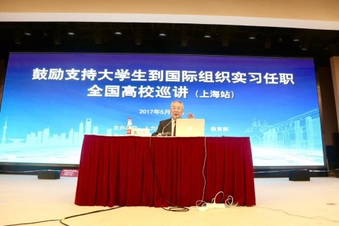 5月12日上午,鼓励支持大学生到国际组织实习任职全国高校巡讲(上海站)活动在我校举行。国际劳工组织高级顾问、原劳动部国际合作司司长张幼云和世界卫生组织原资深外交官、原卫生部外事司司长宋允孚率全国巡讲团走进复旦大学,与近500名师生分享了自己的国际组织工作经历和体会。本场巡讲活动由人力资源和社会保障部、教育部主办,复旦大学承办,来自同济大学、上海财经大学、上海大学、华东政法大学、上海理工大学等高校的师生也在现场听取了报告。复旦大学副校长许征、教育部高校学生司副司长马春晖、人力资源社会保障部国际合作司国际职员处处长王涛出席活动并分别致辞。