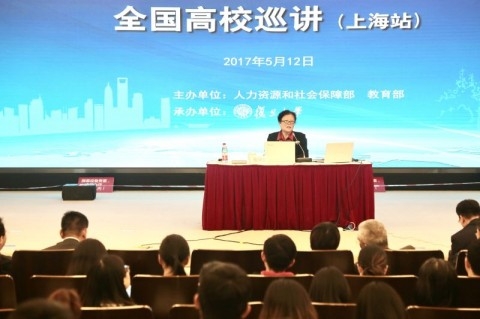 许征代表复旦师生热烈欢迎巡讲团的到来并感谢人力资源社会保障部和教育部选择复旦大学承办上海站活动。
