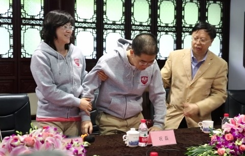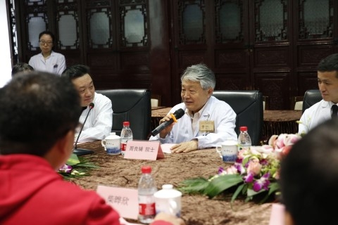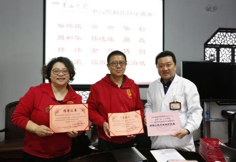 捐赠仪式由基金会理事长、华山医院副院长、神经外科常务副主任毛颖教授主持。基金会监事、华山医院神经外科主任周良辅院士向捐赠方致以了诚挚的感谢,基金会成立不久,期待着社会各界力量的支持,相信这笔善款的注入将有助于培养后备医疗梯队,形成良性的社会大健康环境,使多方受益。捐款发起人之一、作家六六女士感言,这笔捐赠因一次惊心动魄的突发急救而来,由一份医患温情而生,这样的感恩回馈方式或许可以启发更多人,成为健康医患互动模式的典范。45天前仍深度昏迷,现在已经可以站立行走的祝磊在爱人和中欧商学院EMBA赖卫东副主任的搀扶下,向在场的医务工作者鞠躬答谢,医患情谊浓浓。毛颖教授与朱慧女士、商学院同学代表柴晔欣先生分别签署了捐赠协议,并授予证书致谢。朱慧女士、赖卫东先生、柴昕欣先生以及华山医院神经外科吴劲松教授和顾宇翔教授也分别发表感言。