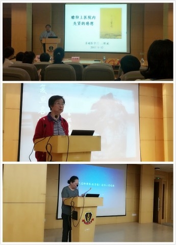 最后,《复旦名师剪影(医学卷)》执行主编刁承湘老师通过自己的经历,感叹上医人的奋斗历史,并对上医精神进行了高度的总结,即“伟大的爱国主义精神”“以人为本的自学精神”“严谨求实的科学精神”“为人民服务的奉献精神”。她勉励在场的党员们要研读原著、认真思考、努力践行。