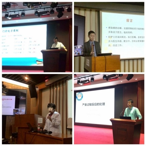 本次活动的讲座数量突破性地增加至8场,内容涵盖常用药的方方面面,聚焦8大主题,由抗生素研究所吴菊芳教授、杨帆教授、林东昉教授、内分泌科叶红英教授、输血科夏荣教授、药剂科王斌教授、焦正教授以及特邀的华西医院刘焱斌教授分别主讲《抗菌药物在老年人的合理应用》《抗菌药物合理应用之护理篇》《经验性抗菌治疗与常见误区》《血糖管理之用药篇》《合理用血培训》《精神、麻醉类药品合理使用》《合理处方相关问题》《严重过敏反应的处置》,共吸引了全院近2000人次医务人员的现场参与。党委耿道颖副书记、医务处王惠英处长、向阳副处长、普外科钦伦秀主任、感染科张文宏主任、张继明副主任、抗生素研究所王明贵所长、呼吸科李圣青主任、内分泌科李益明主任、精神医学科施慎逊主任、胸心外科陈晓峰主任、急诊科山缨主任、重症医学科祝禾辰副主任、老年科周厚广副主任、护理部郎黎薇副主任、教育处黄虑科长等院内“大咖”分别搭档,为每场讲座做主持和点评,现场气氛非常活跃。