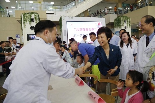 据悉,每年“六一”儿童节,儿科医院都会举行系列活动,为患儿服务,为家庭解忧。自2005年起,儿科医院开始策划组织“365”党员志愿者实现患儿“六一”小小心愿活动,经过13年的探索和完善,从最初的简单任务,逐渐发展成为用心行动、党员参与、医患融合的交流平台。自2011年起,儿科医院开始举行“儿童在我心中”的儿童节大型义诊活动,安排全院各专科30余名医生与家长面对面互动沟通,每年服务患儿400余名。在当天的调研座谈结束后,焦扬、桂永浩一行来到病房,为住院患儿送上“六一”礼物,并前往门诊大厅慰问了正在义诊的医务人员。